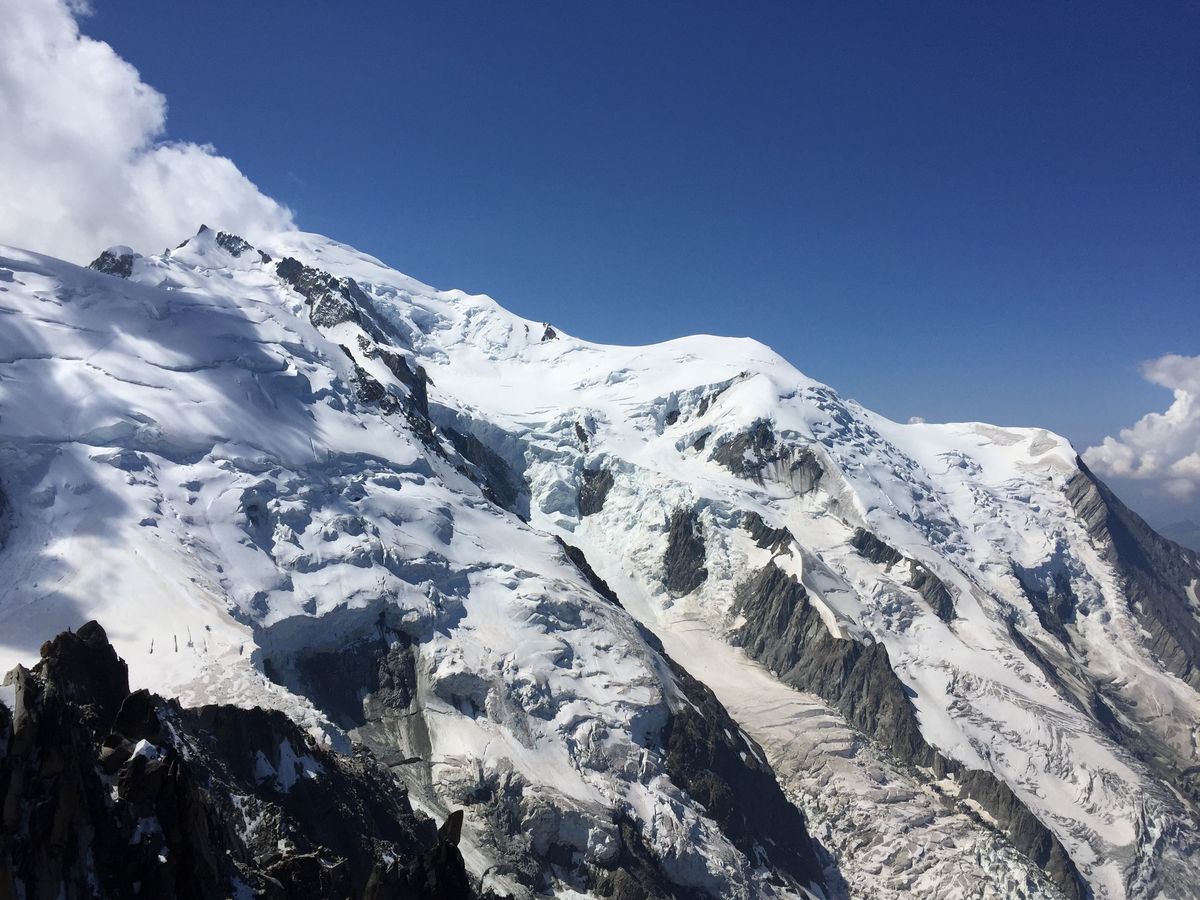 眼前にヨーロッパ最高峰のモンブランを臨み、生まれて初めて氷河に触れることもできて最高の体験でした!