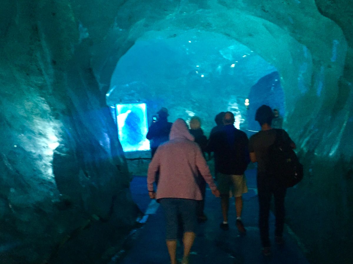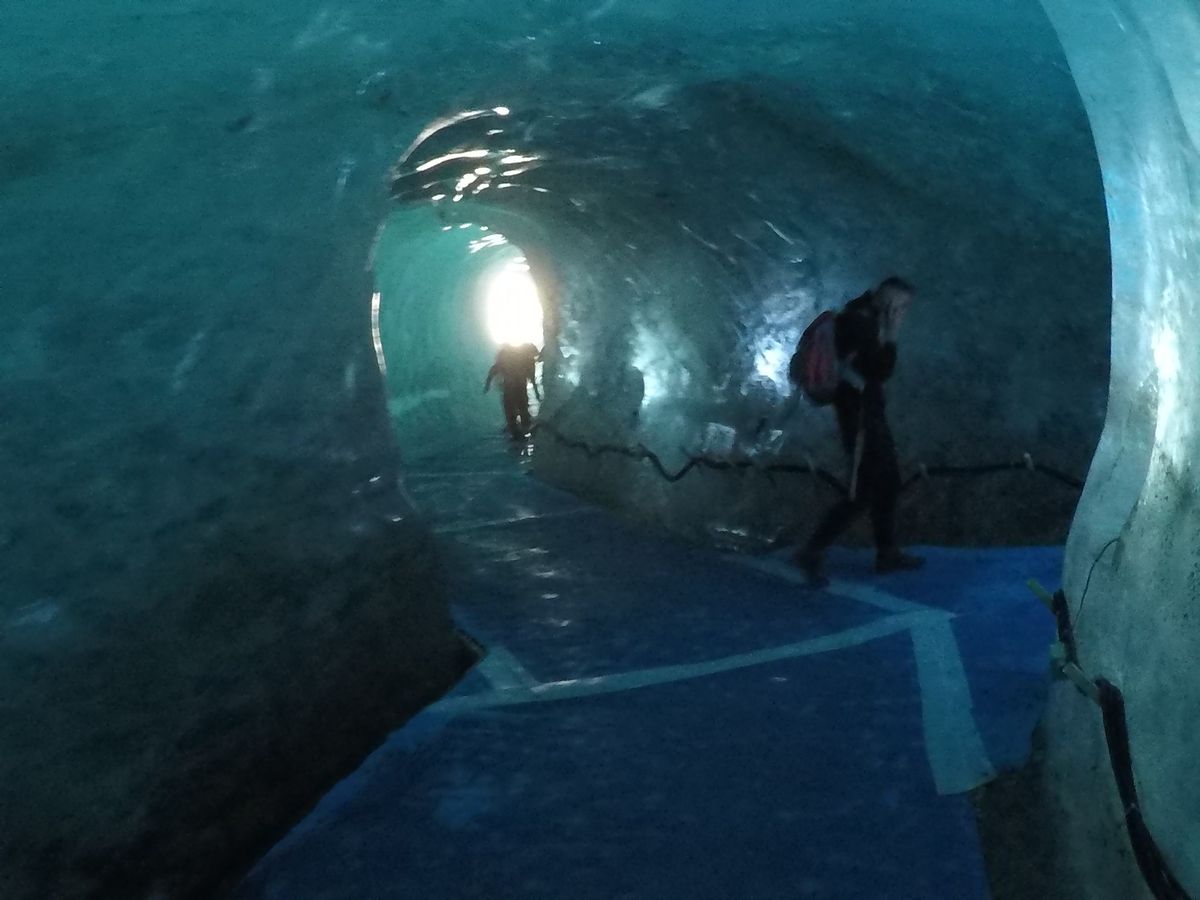 山岳鉄道はのんびりと過ごし、氷河の洞窟も楽しめました。猛暑のせいか防寒着はほとんど必要ないくらいでした。