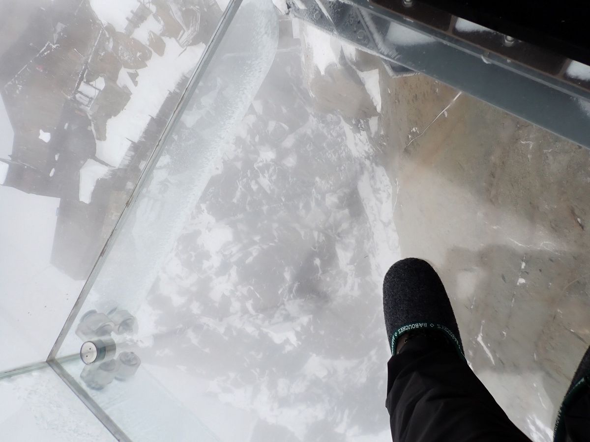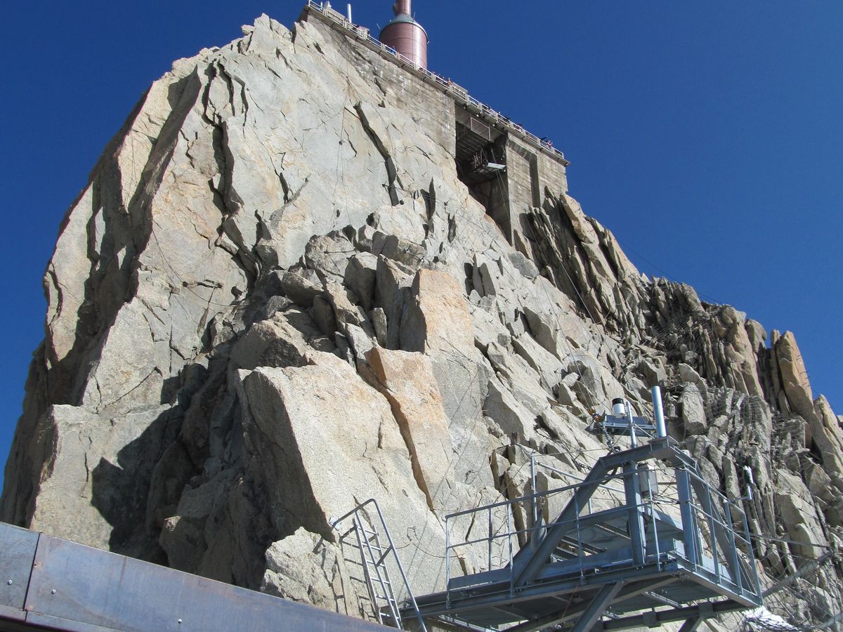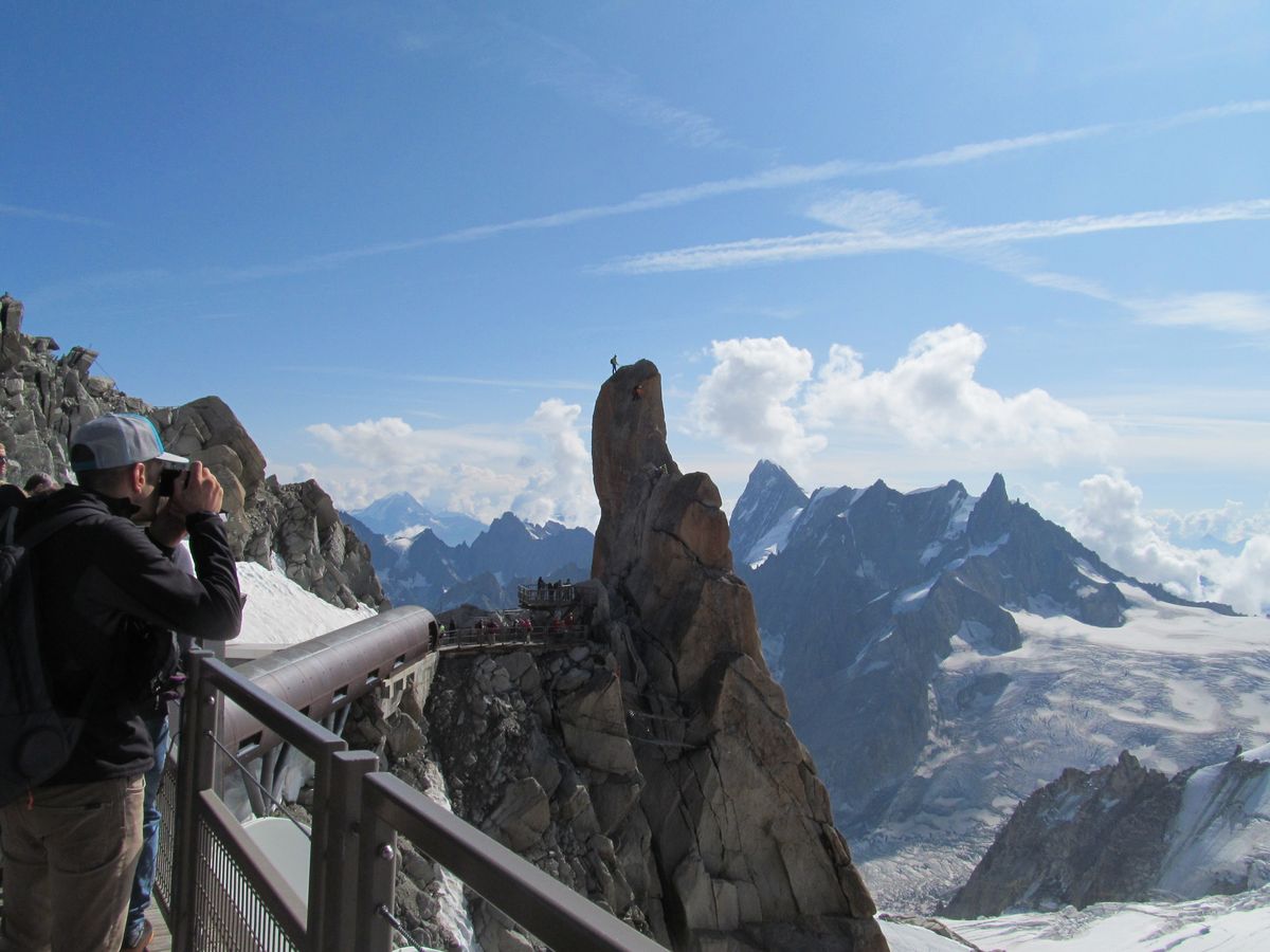 はじめのロープウェイは何千メートルもほぼ垂直にぶら〜んと登っていきますし、エギューユデミディ展望台には天空の渡り廊下があります(渡らないことも可能)。