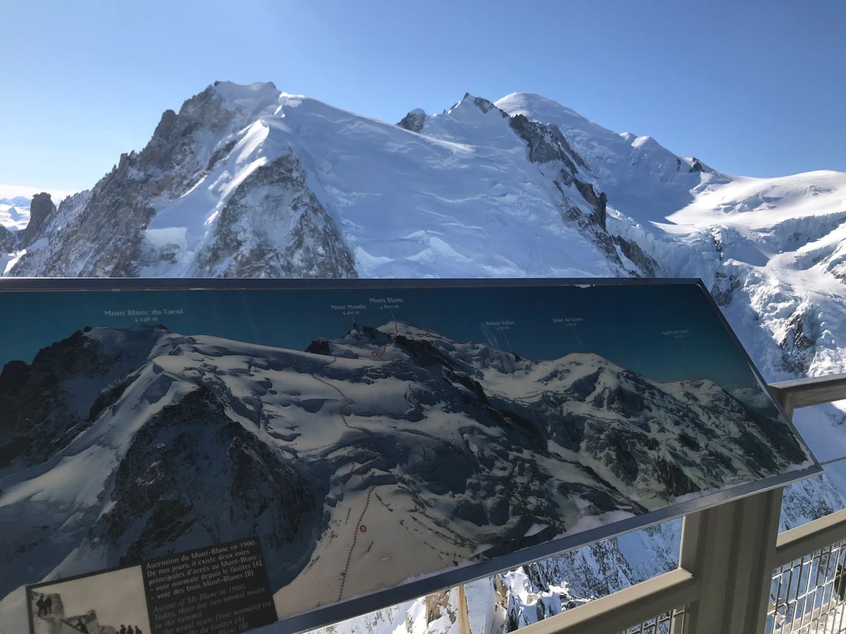 行く直前に、モンブランの展望台に登るロープウェイのロープに不良が見つかり修理する旨の連絡が事前になり氷河登山電車にしました。多言語でないのが不安でしたが、ガイドさんは、日本語もできて晴天に恵まれ満足のいくコースを回れて良かったです。こんな晴天は珍しい位晴れ渡って良かったです。