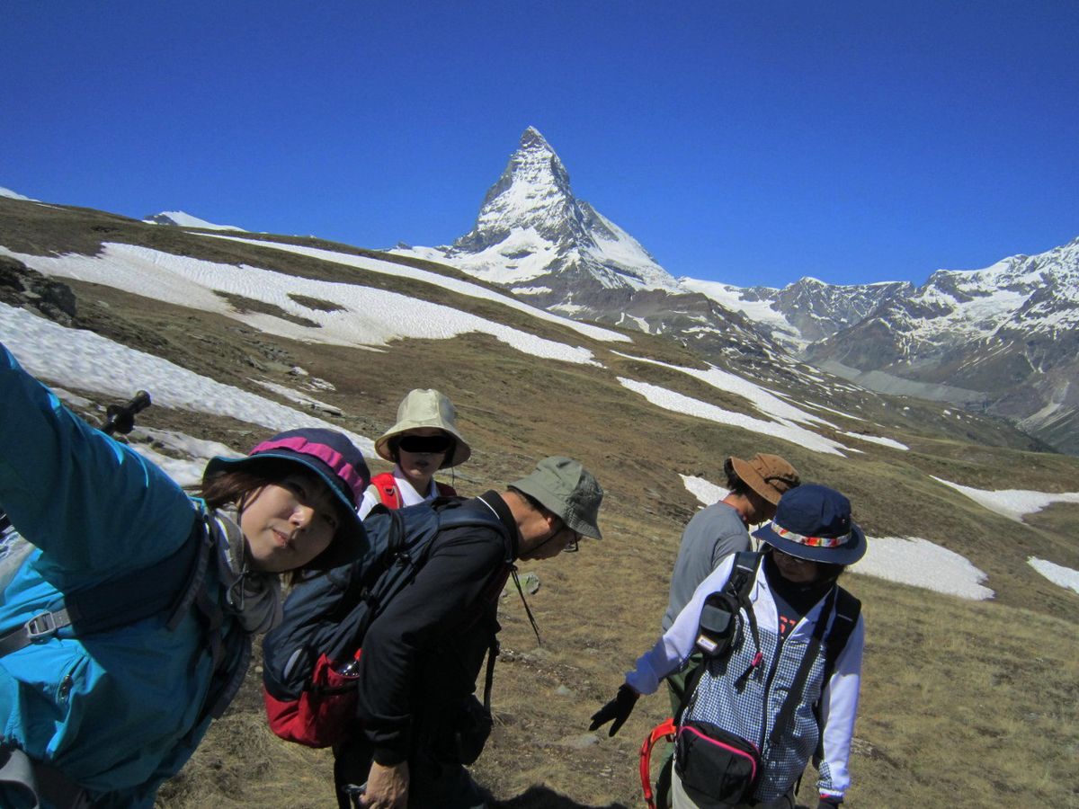 ツアーの最初から最後まで天気に恵まれ、最高のマッターホルンでした。ゴルナーグラート駅の展望台からは朝日に照らされたゴルナー氷河が間近に、マッターホルンは右手奥に見え、アルプスの美しさを感じました。リッフェル湖の逆さマッターホルンを見たくて、このツアーに参加しましたが、ツアー紹介の写真と同じ風景を見ることができて満足です。ローテンボーデンからリッフェルベルクのハイキングも初心者にちょうどよいものでした。左手にマッターホルンを眺めながら下っていくルートもわかりやすかったです。途中、高山植物の花も見ることができました。リッフェルベルクのレストランでの食事もマッターホルンを眺めながら食べることができて、最高でした。ツアーの参加者は私一人でしたが、ガイドが一人ついてくれました。