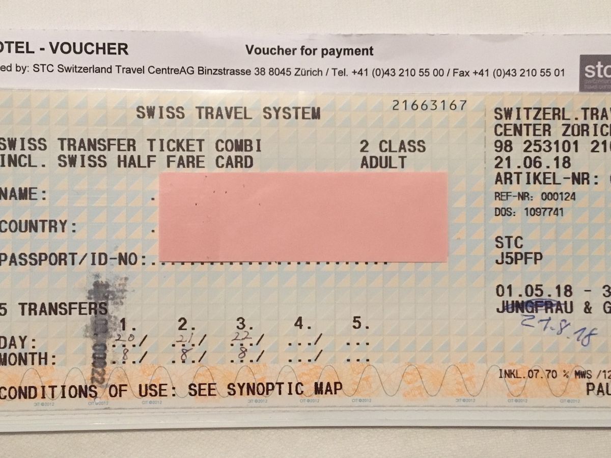 1日目から5日目まで乗る直前に日付を入れて使います(前もって日付を全部記入するのはNG)。初日はこれを使ってチューリッヒ空港からインターラーケンまで移動しました。