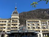 愛の不時着のロケ地インターラーケンでのトイレ休憩は、他に有料のもあるようですが、きれいな大きいホテルで(胸のブルーシールをちょっと隠して)お借りしましたw。昼食はここで買わなくても、ユングフラウヨッホについてからでもパンやカップラーメンなど購入し食べるところがありました。高いでしょうが・・。私はホテルの朝食のクロワッサンにハムチーズなど挟んでジプロックに入れて持参しました。