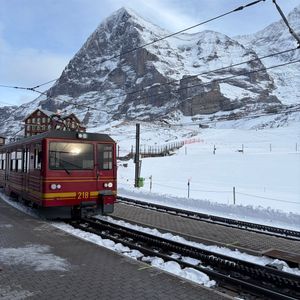 新婚旅行でチューリッヒから参加しました。当日の予報は雨、、。こればかりは仕方ないと思いつつ、、ゴンドラで霧が晴れ「おお!これは頂上も晴れるかしら!!」と思いましたが、、ユングフラウはあいにく雪雲に包まれ、絶景とはなりませんでした。