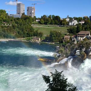 ヨーロッパ最大の水量を誇る名爆『ラインの滝』。かつて都市国家として栄えたシャフハウゼンやドイツとの国境を接する中世の街シュタイン・アム・ラインも周辺の見所です。