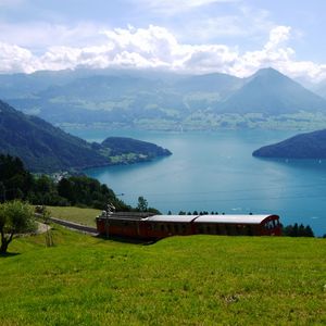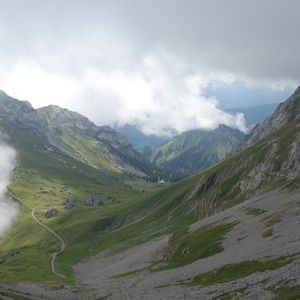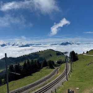 あいにく、リギ山頂は雲に覆われており、下界の景色は雲の隙間から少しだけ見えただけでしたが、山頂までの登山列車での往復の間は美しい山並みを楽しむことができました。