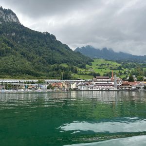 一時間くらいの船旅ですが、船の脇のベンチで景色を眺めていました。ひんやりした風と、湖面、古びた(渋い!)建物が絵になりました。ルツェルンに近づくごとに岸辺の様相も変わり、飽きません。