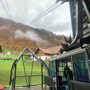 チューリッヒからバスで1時間程度。英語、スペイン語、ドイツ語で街の説明があり、あっという間にケーブルカー駅に着きます。