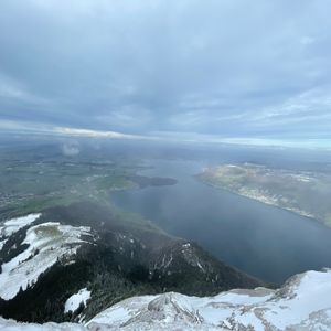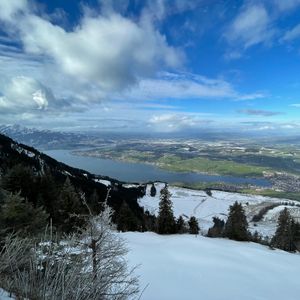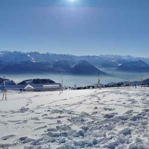 冬ということもあり、道中やルツェルンは雲っていたが、リギの山頂は雲の上になるので晴れており最高の景色を見れた。