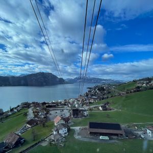 ふもとにつくと、ルツェルンまではガイドなしの行動で、まずはロープウェー&登山電車を乗り継いで山頂に向かいます。