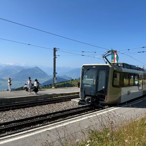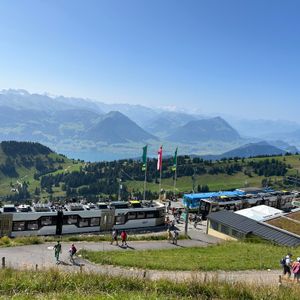 9:15にチューリッヒ駅北(徒歩5分くらい)の大きなバス停に集合。スターバックスの前です。コンテナですがトイレが駐車場内で使えてありがたい。イギリス女性の添乗員さんと観光バスでリギ山のふもとへ。バスの中の英語の説明もわかりやすくて良かったです。リギで20人くらい降ります。残り20人くらいはピトウラス山へいったんだと思います。しらんけど。リギ山ふもとから新しい男性のガイドさんについてロープウェイと登山鉄道で山頂へ。進行方向左側が湖が見えて良かったです。右もそれなりに綺麗ですが。前日にユングフラウヨッホに行って感動の嵐でしたがリギも湖の絶景が見られます。北はオーストリアとドイツ。南のアルプス超えたらイタリア語を話すスイスのエリアでそのむこうがイタリアだとか説明してもらうとワクワクしました。降りる電車の基本は14:15出発ですが私たち家族と外人のカップルはルツェルンを長く回りたかったので13:00の列車で降りました。リギ山のハイキングは1時間弱でした。他の方は2時間15分くらいいたのかなと思います。3時までいるという選択肢もありましたがだれも手を挙げてませんでした。全部自由行動とツアーの説明で読んでいたのでついてきてくれたからびっくり。だけど片道だけでもいてくれて、乗り継ぎのイメージなどがつかめたので良かったです。13:00にチケットをわたされて湖まで鉄道でおり、鉄道の駅前に湖畔駅がありました。鉄道は景色が良いと予測して右側に座り大当たり。クルーズ船は乗車に並んでいたのにいきなり後ろのゲートがあいて、なんで??てなりましたが急いで先頭部分のデッキへ。するとチケット確認するお兄さんがここは一等席だからすわっていたかったら追加金払って、といってきました。一等席、二等席があるなんて聞いてないし!と思いましたが、下の階の進行方向右側デッキ(日陰になります)に座りました。ここで充分楽しかったです。ルツェルンで3時間の自由時間があったのでカペル橋、旧市街、城壁を歩いて時計台にものぼり、ベンチで持参したサンドイッチをたべました。遅めのランチとなりました。最後にライオン記念碑へいき、疲れたのでバスで中央駅そばの集合場所に戻りました。バスや鉄道はZVVというアプリで予約できるようにしておくと便利です。集合場所はマクドナルドの隣の通りです。お迎えのバスが20分も遅れて、まちくたびれました。場所を間違ってないかとすごく不安になりました。まあ、朝にいた他のツアーメンバーの人もそこに戻ってきていたからそのうちバスくるよね?と信じて待ってました。やはり渋滞にはまって遅くなったそうです。