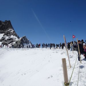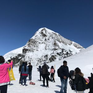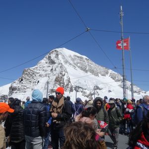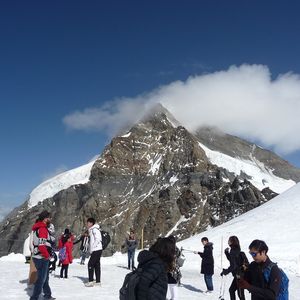 前日にグリンデルワリトに行った時は、雲の中にいるような状態だったので、次の日のユングフラウの当日も眺めはダメだと覚悟していきましたが、途中は、雲や霧が出ていましたが、ユングフラウのてっぺんは、突き抜けていて、素晴らしい眺めでした。今回2度目でしたが、最高に綺麗な景色を撮ることができてよかったです。ただ、やはりチューリッヒ からは、遠く、インターラーケンまで2時間、インターラーケンから、バ途中登山列車になりますが、ほぼ2時間かかります。