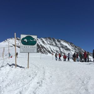 ユングフラウの頂上の展望台では頭上に注意してください。人の頭の2倍ほどの氷の塊が鉄柱から落下して、下にいる人にちょっと当たりました。しばらく動けなくて、家族に支えられて休憩室に行きました。頭に直撃していたらとんでもないことになっていたと思います。こういう管理はほったらかしのところが外国らしいです。