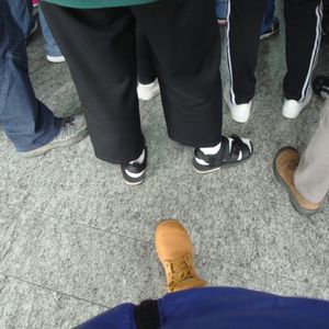 日本の3月始めごろの格好でいいかと。ユニクロの薄いダウンジャケット、もしくは脱ぎ着し安いセーターに春・秋物の上着でいいかと思います。靴は普通の運動靴でもいいですし、サンダルの人もいました。