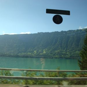 チューリッヒの駅前から最初の目的地の登山列車駅まで、景色を見ながらバス移動。早朝だったのでとても楽ちんでした!