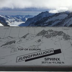 3571mの高さまで電車で登れるのはヨーロッパ(世界?)でもここだけでしょうか。一気に登れるので楽ではありますが、多くの人が通路で座り込んでいました。人生初の酸素欠乏の体験でした。速足も禁物で、ゆっくりゆっくり歩く必要があります。天気は残念ながら曇りで、景色を楽しむことはできませんでしたが、次回に楽しみを残すことにします。チューリッヒから日帰りでユングフラウヨッホまで行けて、2時間半もヨッホにいられるのはこのツアーだけではないでしょうか?
