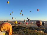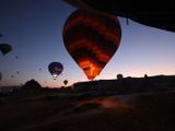 朝4時前に眠い目をこすりながら集合。暗い中を離陸ポイントまで行くとすでに多くの気球が熱入れ作業中でこの時点で気分が上がって来ます。乗客は16名で人種は色々。パイロットは1名で英語で楽しいトークを繰り広げます。英語ができなくても問題ありません。雰囲気だけで楽しいですから。時間がくれば一斉に150機の気球が離陸を始めてひしめき合うように飛行します。怖いのだろうかと言う心配は杞憂です。ジェットコースターに乗れない妻も大満足してましたから。観覧車に乗れる人なら大丈夫でしょう。