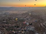 9月下旬に家族で気球付きプランに参加しました。2日前まで4日間連続で強風のため気球が飛ばなかったと聞いて心配していましたが、参加当日は無事催行され、100以上の気球と共にギョレメの奇岩群の上空を飛びながら朝日を眺める感動的な体験をすることができました。気球はパイロットを入れて32人乗りで、ほとんど揺れることなく安心して乗ることができました。着陸後に写真の購入を勧められ、私たちは写真と動画のデータを30ユーロで購入しましたが、購入希望がなければ買わなくても大丈夫そうでした。