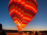 迎えに来た人は日本語が通じない。途中で合流したグループは中国系で通訳も中国系。日本人は私と娘の二人だけ。暗闇の会場に到着して朝食(紙パックジュース、パウンドケーキ2個)が配られました。いつ食べれば良いのか分からず、同乗者が食べている人がいたのでいただきました。送迎バス内で搭乗待ちをしている間はかなり寒いです。トイレの案内もなく不安。しばらくして気球に空気が入れられだすと少しづつ周囲が見えてきて搭乗が間もなくと分かります。