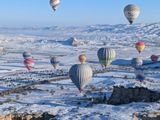 しかし2日目は幸運なことに朝から快晴で、カッパドキアの美しい雪化粧を気球から眺めることができました。