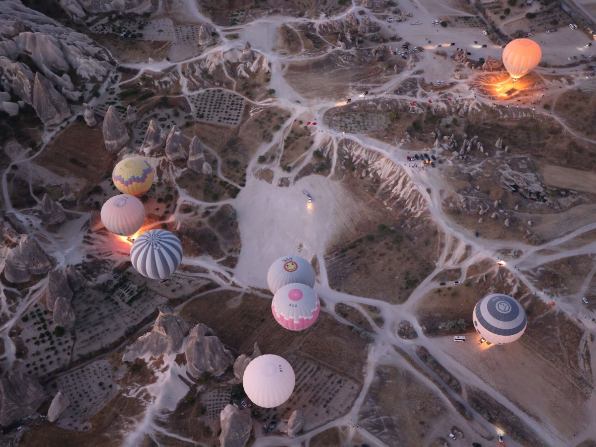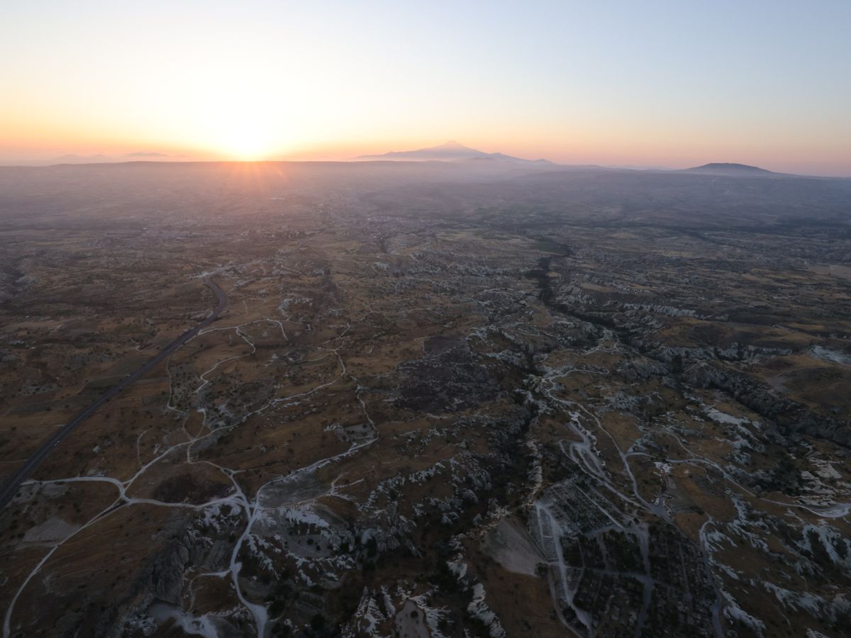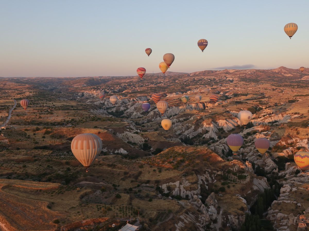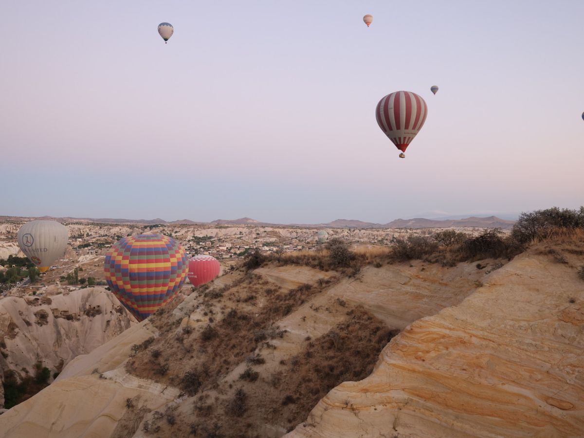 とはいえ、カッパドキアにいるからにはチャレンジすることを強くお勧めします。上空から見る奇岩地帯、ピジョンバレーやレッドバレー、地殻変動と水と風という地球の営みで生み出された複雑に入り組みつつも美しい地形を、上空から、特に朝焼けの中で見る体験は、まさにここでしかできないものでした。これら全てが今も風雨で削られ姿を変えている最中で、今しか見られない、いつまであるか分からない風景です。