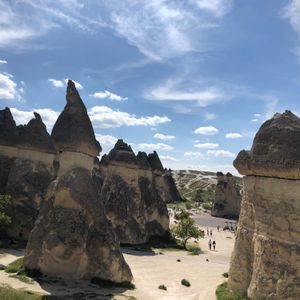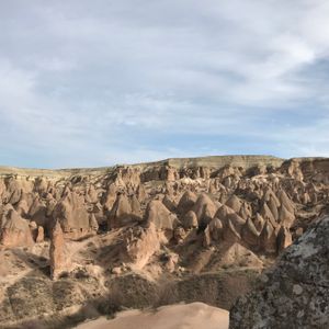 ツアーでは、王道の「妖精の煙突」「ギョレメ野外博物館」、そして「地下都市」などを見せてくれます。自然の作り出した奇跡的な形をした奇岩、太古の昔から残る地下都市の歴史など、圧倒されました。けっこう歩くのと、岩の上が滑りやすかったりするので、歩きやすい靴とパンツスタイルをお勧めします。妖精の煙突の場所にはラクダがいたので、自由時間に乗ってみました。狭いエリアを一周するだけの短い体験ですが、確か500円未満くらいで安かったです。