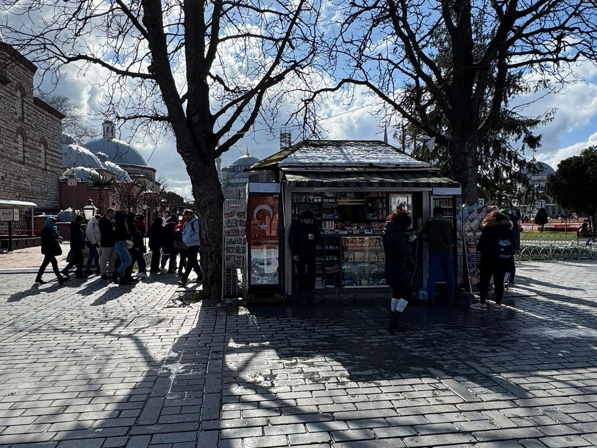 待合せ場所:アヤソフィア前にある広場の小さな売店、誘導員が傘を持っていたので目印になりました