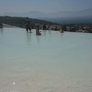 ツアーは09:30頃バスに乗車して始まりました。英語のガイドでしたが、明快でした。ヒエラポリスの遺跡を徒歩で見学後、12:00頃から一時間ほどフリータイムがあり、有名な石灰棚を歩きました。温泉の水量こそ制限がありましたが、さすが世界遺産、不思議な光景でした。11月初旬に参加しましたが、気候としては日差しが強いので七分丈のシャツ、ズボン、サングラスでちょうどよいくらいでした。熱い風呂になれている日本人としては、浸かるには少し寒いかなという感じです。そのあとはレストランへ移動し、ガイドツアーは終了しました。この時点で、14-15時くらいだったと思います。