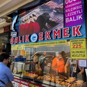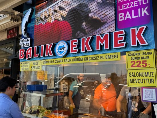 昼食は、地元の人達と並んでトルコ名物の鯖サンドを購入して食べました。