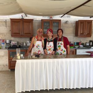 イスタンブールから一泊二日でカッパドキアに行きました。日本語のガイド、オカンさんにお世話になりました。宿泊のブティークホテルSha Matではトルコ料理教室のリクエストに応じていただきました。作った料理をランチにいただきました。
