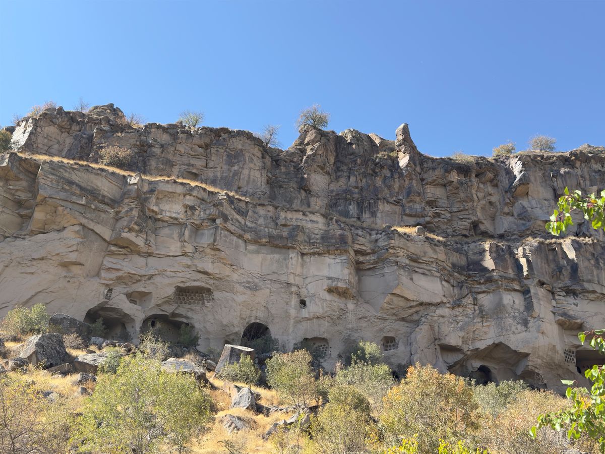 今回のツアーではOYAさんに大変お世話になりました。ウフララ渓谷ももちろんよかったのですがギョレメからの風景が日本とは異なり雄大で広々とした風景が連なっていました。北海道にも近いとも言えますが、種を食べるカボチャがキラキラ光っておりとても異国情緒溢れる景色でした。某有名ガイドツアー会社から1週間ほど前にキャンセル連絡が届き急きょこちらのツアーをお願いしたのですが結果は大満足でした。OYAさんが案内した昼ご飯もとても美味しく、また無理をいってナッツの店にも連れて行ってもらいました。本当に楽しい1日となりました。この日は天気がよく10月初旬なのでハイキング日和でした。渓谷のウォーキングは1時間30分くらいで普段あまり歩いていなくても問題ありません。カッパドキアの体験と言えば気球ツアー、レッドツアーですが時間が許せばぜひグリーンツアーも検討されればよいかと思います。