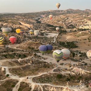 カッパドキアで熱気球ツアーを利用しました。少し値段は高いと思いましたが、思い出に残ればと思い、予約しました。 5時にホテルピックアップの予定でしたが、前日ホテルに着いたら4時に迎えの連絡が入っていました。4時にバンに乗り、気球発着の場所へ。そこでバスに乗り換えました。バスには台湾からきた団体の人たちがいました。バスの中で軽食を食べながら気球に空気を入れるようすを見ました。その後気球に20人くらい乗って約1時間のフライトでしたが、途中朝日が昇り、まわりには100を超える飛ぶ景色はとても素晴らしく幻想的でした!カッパドキアの街を空から眺め、台湾の人々たちとも話ができて忘れられない体験になりました。ありがとうございました。