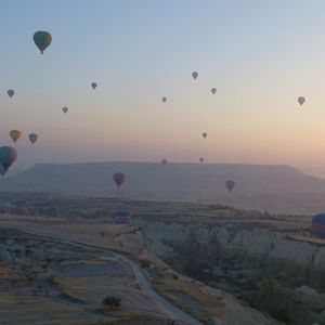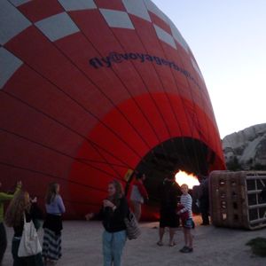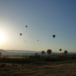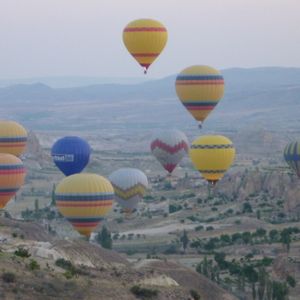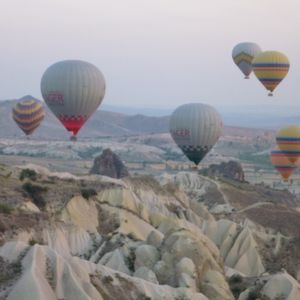 2013年12月20日気球に初乗り。当日は抜けるような青空で、雪原にカッパドギアの奇岩だとか村々が見えます。空には他の気球が色とりどりに浮かんでます。風がないのでふんわりとして、幸せを感じることができました。高所恐症の私でも全然平気でした。