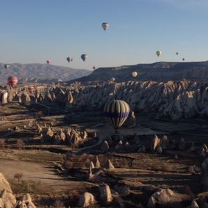 カッパドキアでは絶対にはずせないツアー。空から眺める世界遺産カッパドキア、そして日の出は素晴らしかったです。地上の景色はもちろんの事、多数の気球が遊覧している様子も圧巻です。山の斜面ギリギリの所を通ったり谷底の近くを通ったりと1時間も遊覧してくれるので、写真も沢山撮れ、ゆっくりと楽しむことが出来ました。フライト後のシャンパン、美味しかったです。5月中旬でしたが、朝早いので、かなり寒いです。温かい格好で行った方が良いです。ホテルに8時ごろには戻れるので他のツアーとのコラボも可能で、私達はホテルで朝食もゆっくりと取れました。