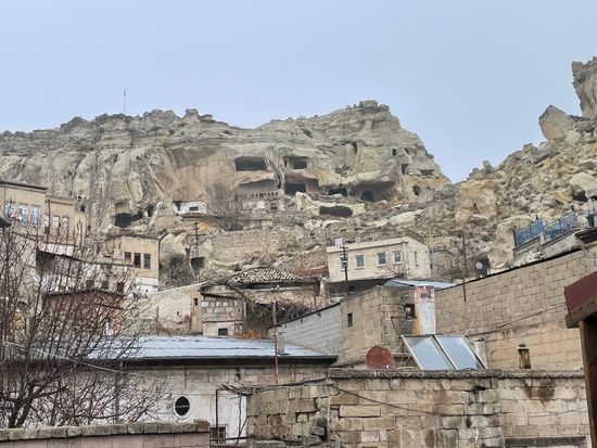 ウチヒサールとは尖った岩という意味で、巨大な一枚岩をくり抜いて造られた城塞が中心になった街です。