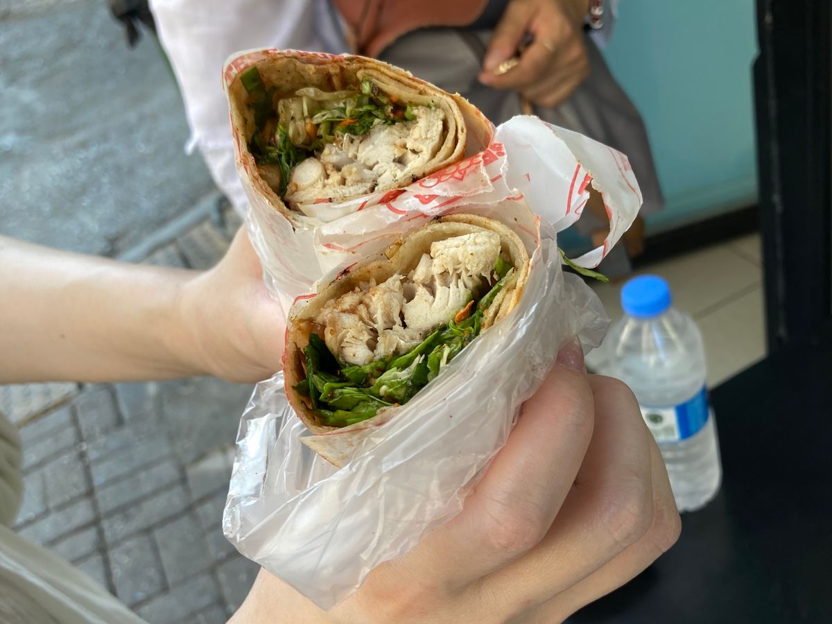 昼食は、地元の人達と並んでトルコ名物の鯖サンドを購入して食べました。
