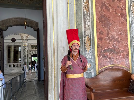 金曜日は、モスクで長い礼拝があることや、クルーズ船の到着曜日に重なるため、本来のスケジュールを臨機応変に変更してもらい多くの経験をすることができました。朝一番にトプカプ宮殿に行き2時館ほど見学しました。ガイドさんの知識が豊富で重要な物の見落としがないよう案内してもらえました。