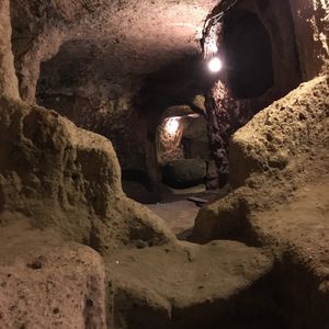 ガイドの男性はガイド歴18年で日本語がとても流暢でした。そして地下都市の研究家でもあります。カイマクルの地下都市では詳しいところまで分かりやすく説明してくださいました。昼食は川沿いのレストランで涼しい風を浴びながらトルコ料理をいただきました。予定表には入っていなかったカッパドキアのハイライトであるパシャバーのきのこ岩にも連れて行ってくださいました。トルコ絨毯のお店にもコースに入ってました。このあたりご参考に。