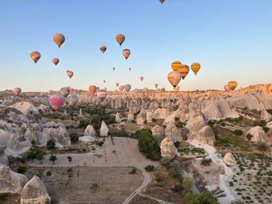 イスタンブールに早朝到着、その日の午後便でカッパドキアへ移動でアレンジしていただきました。熱気球は絶対トライする価値あり。 岩肌に触れるくらいすれすれに谷を行き、更に高く上がって水平線に太陽が昇るのを望む。 桁違いの自然に感動しました。