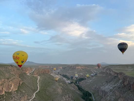 カッパドキアといえばの気球をとても楽しみにしていたのですが、よく見るカッパドキアのたくさん気球が飛んでいる場所では無かったのがとても残念でした。(他の方の体験談を見ていると、最近変更になったのでしょうか?昔の方はたくさん気球のある写真を掲載されているので)それでも乗れたのは良かったかなと思います。