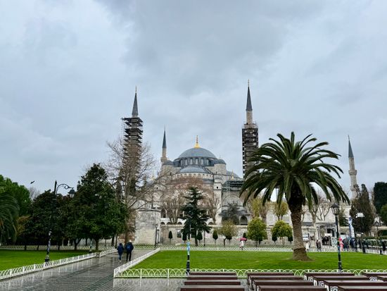 小雨が降ったり降らなかったりの天候でしたが、傘をささずに歩いて回る事ができました。約2万歩ほど歩きます。ブルーモスクもアヤソフィアもトプカプ宮殿も大小工事しているところが多くて、特にアヤソフィアは、大工事のようで、外観のみ、入場せず。その代わりなのか、予定に無いハレムの見学ができました。あいにくの天気で、トプカプ宮殿からの金角湾や新市街の眺望も充分ではありませんでしたが、晴れた日には素晴らしい眺めとなる事は確実です。ランチのトルコ料理も良かったし、ガイドさんも日本語がお上手で、良いガイドでした。