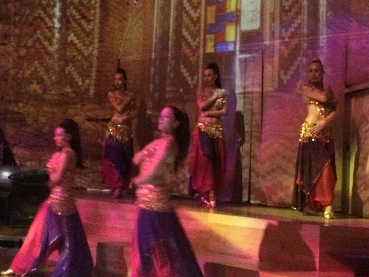 ダンスそのものは、比較的短い時間で、なんどもダンサーが入れ替わり、息をつく暇もないハイペースで、ショーは続きます。お目当てのベリーダンスは3種類ぐらいは、みれました。ソロダンサーのパートが個人的にはとてもよかったです。それ以外の伝統ダンスは、ちょっとはずむような感じのダンスで、これがトルコの伝統ダンスなのかと感じ入り、食い入るようにみていました。