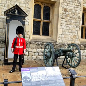 9時前にTower of London Shop前に行くと、その近辺で5 Groupsが集合している。全Groupsのガイドに夫々Golden Tours のOutputを見せたが違うと言われた。旗を持ち先導しているGroup, 音声ガイドを渡して各々入場するGroupも有った。入場開始の9時が来たがGolden Toursの人は現れない。入場Gateの女性に日本でOutputし、持参したQR Codeを見せると、ピッとしてOK 入場可能と言われたので、Tower of London内に一人入り、入り口で貰ったMapと説明看板を見ながら、Jewels Tower(歴代の王冠等展示)、Fusilier Museum, Prison , White Towerの甲冑を見て、10:30に退出した。日本人添乗員にGoldenToursの書類を見せると入場だけだろうとの事だが、それならば、含まれないものを明示すべきである。つまり、「Meeting PointにはGoldenToursの係員はいない。内部のガイドなし、音声ガイド器もなし、必要ならば入場券の購入場で自己調達の事。」と明示すべきだと思う。だれか来ると期待して待ち続けると時間のロスが大であろう。また、金曜日の入場券の現地購入場はそれほどの列にはなっていなかった。ロンドン塔(Tower of London) の展示物は素晴らしものであった。 Yorky