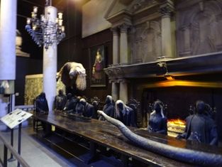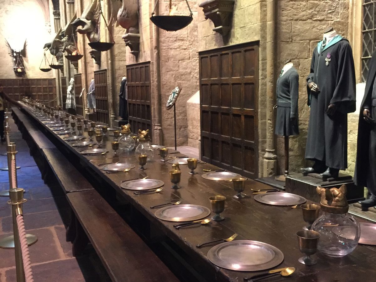 10時出発で1時間ほどで到着し、入場時間まではグッズ売り場で時間をつぶすことができました。入場しチケットを読み取ってもらうとすぐのところにハリーの階段下にあった部屋のセットがあり、その後ちょっとした紹介映像を見て、魔法学校の食堂セットに通されます。後は借りたヘッドセットで説明を聞きながら進みますが、全部聞いていると時間がなくなります。途中の売店でバタービールを飲み、魔法学校の模型を見て終了となります。