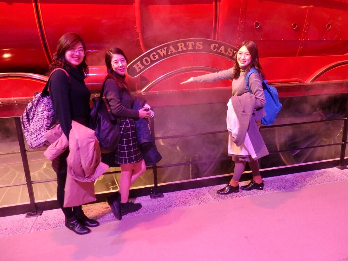 行きのバスでは英語のみですが、ハリーポッターの映画を上映しています。非常にたくさんの国々の方が参加していた印象を受けました。わたしたちが参加した時は日本人のグループはわたしたちの他に2組いたと思います。9と3/4番線のホームのセットがあり、写真をとるスペースが3つ用意されてるいるのでスムーズに写真が撮れます。他にも写真を撮るのは自由でいろいろなセットの前で写真が撮れます。
