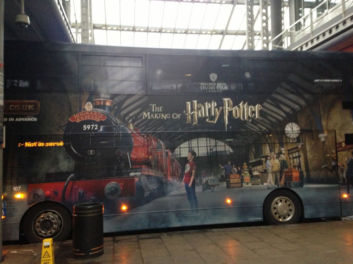 ハリーポッターの絵を描いた2階建てバスに乗って、ビデオを見ていると