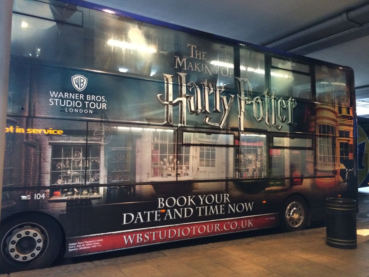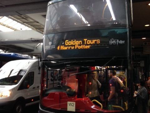 ハリーポッタースタジオのツアーということでまず最初にうれしかったのはハリーの装飾がされたバスでの送迎。車内では一作目の賢者の石を見ることができ、片道一時間ほどのバスの旅も満喫することができました。