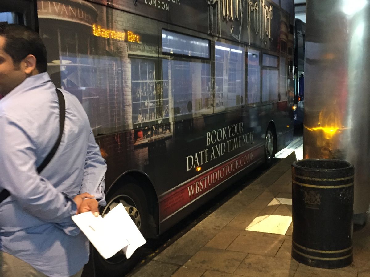 出発15分くらい前にチケットの確認。それと共にハリー・ポッターのラッピングバスが到着。