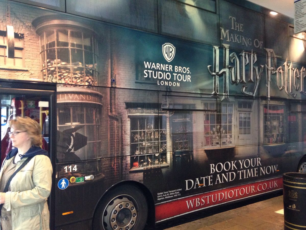 もう一度映画を見てからツアーに参加したので、感動は倍増しました!早く着いたので、その分見学できる時間も予定より少し長かったのですが、あっと言う間に出発時間になってしまいました。9:00発のツアーだったので、スタジオ内で軽食&バタービールを食べましたが、スタジオの外にもカフェはあります。オフィシャルバスは絵がペイントされてるのではなく、カバーをかけている感じのので、2階席(一番前以外)だとバスの中から外の景色を楽しむことはできなかったです。