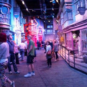 3時出発のツアー申し込み2時半集合になってましたがチェックもないので3時前に行っても大丈夫でした。トイレがないのでビクトリア駅の二階のフードコートですますか集合場所横のカフェで何か買うかトイレ使用に50P払うことになります。ダブルデッカーのバスでスタジオまで行きますがハリーポッターのフィルムが貼られているのでバスの窓から外の風景が見えません。4時過ぎにつきギフトショップを見たら百味ビーンズが全くありませんでした。夕方には売り切れたんでしょうか?入場5時から5時半のチケットをもらいましたがそれより早くても入場させてくれました。実際に映画で使われた衣装やセット、小道具はさしてハリーポッター好きでもなくても楽しめます。箒に乗って空を飛ぶコーナーはお勧めです。写真は3種類撮ってある中から選べ1枚12£2枚20£写真1枚とDVDで40£でした。バタービールは泡の部分がバタークリームなので飲み物の味がわからずただ甘かった。じっくり見ても混んでなければ三時間あれば足りると思います。入口横にはカフェがありサンドイッチなど軽食がいろいろあったので食事もできます。